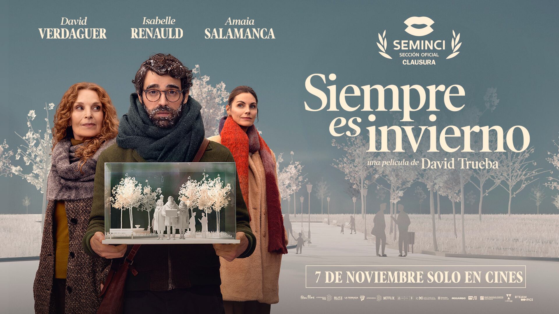 La nueva película de David Trueba basada en su novela ‘Blitz’Cartel promocional de ‘Siempre es invierno’El próximo 7 de noviembre se estrena en cines Siempre es invierno, una película dirigida por David Trueba y protagonizada por David Verdaguer, Amaia Salamanca y la actriz francesa Isabelle Renauld. La cinta narra la historia de un arquitecto (David Verdaguer) cuya vida cambia completamente de un día para otro.Por ser suscriptor de EL PAÍS, participa en el concurso y consigue dos entradas para asistir al preestreno de esta divertida y tierna comedia romántica que tendrá lugar el martes 4 de noviembre a las 20:00 en el Cine Palacio de la Prensa de Madrid, al que asistirá el equipo de la película.SinopsisMiguel (David Verdaguer), arquitecto paisajista, viaja a Bélgica con su novia Marta (Amaia Salamanca) para participar en un congreso. Allí se precipita el final de su relación y tras la ruptura con su pareja decide quedarse a solas unos días más para tratar de recomponer su futuro. Roto y desubicado, Miguel conoce a Olga (Isabelle Renauld), una mujer que trabaja como voluntaria en el congreso de arquitectura. A su lado comenzará a reconstruirse y a entender en qué consiste su nuevo proyecto de vida.Más informaciónMartes 4 de noviembre a las 20:00Archivado EnSi está interesado en licenciar este contenido, pinche aquí
