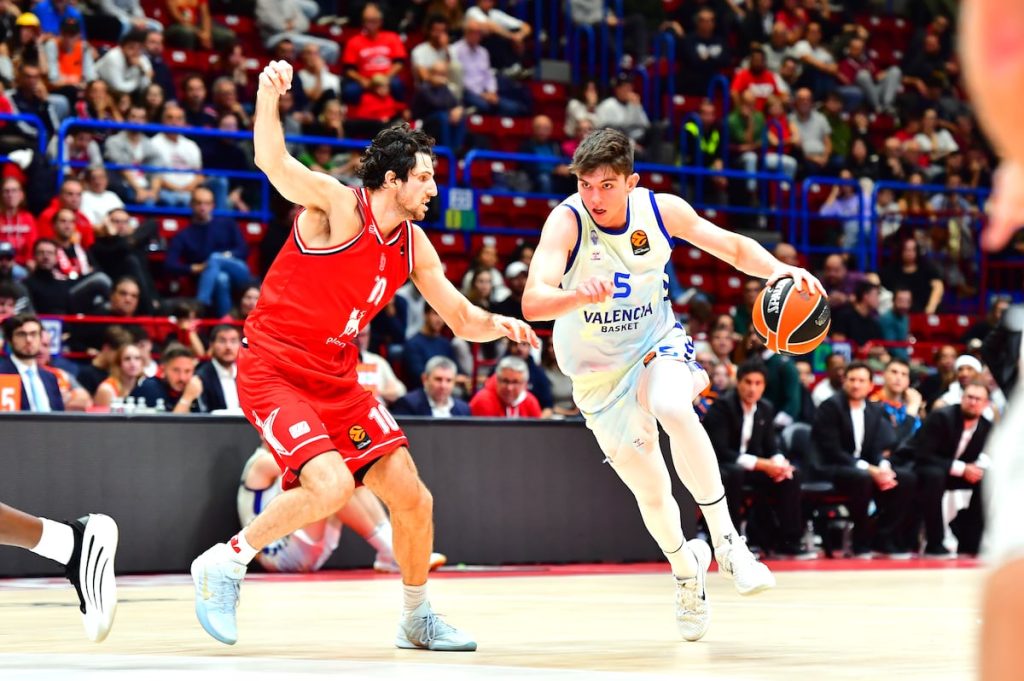 El Valencia Basket ha sido el único equipo español que ha logrado la victoria en otro partido con muchos puntos (100-103). El cuadro de Pedro Martínez acabó sufriendo mucho en el último minuto después de haberse paseado en el tercer cuarto, su momento estelar, cuando alcanzó los 22 puntos de ventaja (57-79) después de acertar siete triples en los primeros cinco minutos de este periodo. El Barcelona cayó en su feudo frente al Zalgiris Kaunas (73-88) y el Baskonia sumó su sexta derrota seguida, esta vez en Belgrado, ante el Estrella Roja (90-72). La víspera ya había sucumbido el Real Madrid por un punto frente al Maccabi (92-91). El Armani Milán no se asustó por esos 22 puntos de diferencia y, poco a poco, mejorando su defensa y dejándose guiar por un desmelenado Leandro Bolmaro (31 puntos, cuatro rebotes y tres asistencias) fue acercándose en el electrónico. El acierto en el tiro exterior del Valencia Basket pasó a manos de los de Ettore Messina, que hicieron la proeza, sumando a Armoni Brooks, de empatar el duelo (100-100) a poco más de dos minutos para el final.Pedro Martínez dejó claro que Jean Montero es uno de sus referentes y, aunque acaba de reaparecer después de perderse los primeros partidos por una operación en la mano, permitió que el dominicano se quedara el balón en los momentos decisivos. Al técnico catalán le encanta que el base nunca se esconde. Montero llevaba un triple de cinco intentos, pero buscó su momento y metió el triple decisivo (100-103). No importó que fallara uno más porque Darius Thompson consiguió taponar el tiro de Shavon Shields que pretendía forzar la prórroga. El Barcelona no tuvo ninguna opción en su feudo frente al potente Zalgiris Kaunas. El equipo lituano marcó las diferencias desde el salto inicial y entró en el partido con un parcial favorable de 0-9. Al Barça no le sentó nada bien ir siempre a remolque y cerrar el primer cuarto ya con 12 puntos de desventaja (14-26). El alemán, aunque de origen senegalés, Maodo Lo, fue decisivo con 11 puntos en siete minutos. Cambia mucho el equipo de Joan Peñarroya cuando lo dirige Tomas Satoransky de cuando lo hace Juani Marcos. En cuanto el Zalgiris logró una renta cómoda en la segunda mitad, el conjunto azulgrana se quedó fuera de la pelea por el triunfo. El Baskonia sigue sin despertar en la Euroliga. Seis derrotas en seis partidos para el equipo de Paolo Galbiati, que dio la sensación en la primera mitad de poder darse la primera alegría de la temporada en Europa. El conjunto vitoriano se fue al descanso por delante (40-43) después de haber hecho un trabajo muy serio. Pero en el tercero se derrumbó después de un tramo en el que se sintió desarbolado una vez más (32-15 en el tercer cuarto).