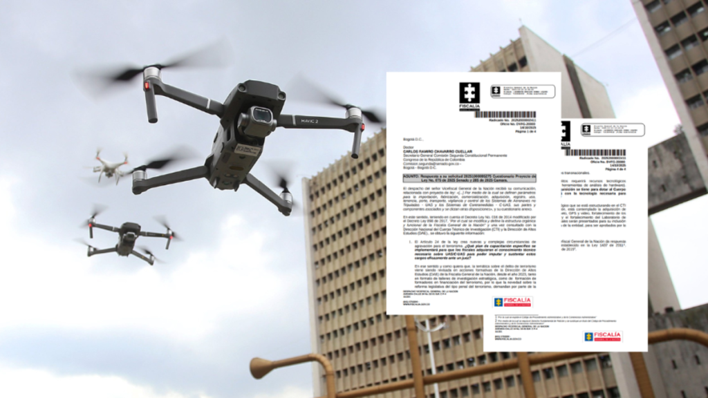 A propósito de la amenaza para la seguridad que supone el uso de drones por parte de grupos ilegales, en el Congreso ya cursa un proyecto que busca abordar esta problemática. Entre tanto, uno de los conceptos enviados por las entidades del Estado para la discusión, la Fiscalía anunció el fortalecimiento del CTI mediante la adquisición de software de análisis forense de vuelo, GPS y video.La iniciativa, presentada por el Ministerio de Defensa, busca establecer un marco normativo integral para la tenencia, uso y control de drones, e incluye la tipificación de sanciones penales para usos ilegales y el registro obligatorio de drones y antidrones.Drones Foto:JUAN PABLO RUEDAEL TIEMPO conoció el concepto que envió Enrique Rumbo Luquez, de la Vicefiscalía General de la Nación, se contempla la adquisición de software especializado en análisis forense de vuelo, GPS y video para el Cuerpo Técnico de Investigación (CTI), así como el fortalecimiento de equipos de extracción de datos y del Laboratorio de Informática Forense. “Los cuales serán presentados para su inclusión en rubros en el Plan de Inversiones de la entidad, para ser aprobados por la Dirección de Planeación Nacional”, dice el documento.Concepto de la Fiscalía sobre proyecto para regular drones. Foto:Archivo Particular.La entidad, en cabeza de la fiscal Luz Adriana Camargo, también reforzará la cooperación judicial internacional mediante su participación en redes de cooperación penal y la coordinación con agencias como Interpol, Europol y la Oficina de Naciones Unidas contra la Droga y el Delito (Undoc), con el fin de rastrear componentes, software y operadores transnacionales.En respuesta a un cuestionario sobre el proyecto de ley que regula el uso de sistemas de aeronaves no tripuladas (UAS) y de contramedidas (C-UAS), la Vicefiscalía indicó que desde 2023 la Dirección de Altos Estudios (DAE) ha venido capacitando a investigadores y fiscales en la investigación de delitos relacionados con terrorismo y financiación del terrorismo. Con la eventual aprobación del Proyecto, la Fiscalía continuará estas formaciones para actualizar los procedimientos de investigación y apoyo pericial.Drones Foto:Archivo ParticularLa entidad explicó que sus investigadores del CTI que operan drones están registrados ante la Aeronáutica Civil y cumplen los protocolos establecidos en la norma RAC 100. Además, la DAE desarrollará reentrenamientos con pilotos ya certificados, incorporando módulos sobre control e interceptación de aeronaves cuando haya indicios de uso en actividades terroristas.La Fiscalía recordó que el Manual del Sistema de Cadena de Custodia, aprobado por el Consejo Nacional de Política Criminal, establece los lineamientos para la recolección y preservación de evidencia digital. También destacó los convenios de cooperación vigentes con la Fuerza Aeroespacial Colombiana, la Policía Nacional y la Aeronáutica Civil, así como la existencia de grupos especializados en el CTI para el manejo de herramientas tecnológicas y evidencia digital.Frente a la destrucción de aeronaves no tripuladas por parte de la Fuerza Pública, prevista en el artículo 9 del proyecto de ley, la Fiscalía señaló que ese procedimiento plantea desafíos probatorios, pero puede sustentarse con fijación fotográfica y videográfica del procedimiento y con informes periciales que certifiquen la naturaleza y uso del dispositivo neutralizado.Juan Diego TorresDielas@eltiempo.com