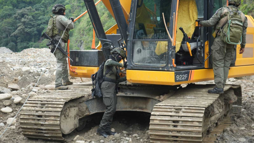 La Policía ejecutó la Operación Pijaos I como parte de una estrategia interinstitucional orientada a frenar la explotación ilícita de yacimientos mineros en el sur del Tolima. La intervención se concentró en áreas rurales del municipio de Chaparral, donde autoridades identificaron unidades de producción minera que operaban bajo la modalidad de cielo abierto y que sostenían una cadena económica ilegal asociada a estructuras criminales.El operativo fue desarrollado por la Dirección de Carabineros y Protección Ambiental con apoyo de la Unidad de Diálogo y Mantenimiento del Orden (Undmo) y la Aviación Policial, en coordinación con la Fuerza Aeroespacial Colombiana. De acuerdo con el balance oficial, la acción permitió intervenir ocho unidades de producción minera ubicadas en las veredas Amoyá y Santa Rosa, zonas donde se había documentado una afectación directa sobre ecosistemas estratégicos y fuentes hídricas.Durante la operación, las autoridades procedieron a la inutilización de siete excavadoras, tres motores industriales, una draga, una planta eléctrica industrial y una motobomba. Según la Policía, esta maquinaria era utilizada de manera permanente para la extracción ilegal de minerales, lo que sostenía un flujo económico continuo para las organizaciones vinculadas a esta actividad.Una de las máquinas intervenidas. Foto:CortesíaEl impacto económico de la maquinaria inutilizada fue estimado en aproximadamente 5.700 millones de pesos.Las autoridades señalaron que la intervención permitió detener el vertimiento de insumos como mercurio, cianuro, combustibles y aceites sobre el río Amoyá, un afluente que abastece a comunidades cercanas y que había sido identificado como uno de los puntos críticos por la actividad minera ilegal.La Policía indicó que estos vertimientos representaban un riesgo para la biodiversidad y para la seguridad ambiental del territorio.La maquinaria destruida. Foto:CortesíaEn el componente financiero, la Dirección de Carabineros estimó que la explotación ilícita intervenida generaba ingresos cercanos a los 4.000 millones de pesos mensuales. Además, la operación impactó de forma directa las finanzas del Estado Mayor Central, Frente Ismael Ruiz, de las disidencias de ‘Iván Mordisco’, al afectar el recaudo extorsivo que, según información oficial, alcanzaba aproximadamente 55 millones de pesos mensuales derivados de esta economía ilegal.El director encargado de Carabineros y Protección Ambiental, coronel Gonzalo Esteban Blanco, explicó que la inutilización de la maquinaria busca reducir la capacidad operativa de las estructuras dedicadas a la minería ilícita y limitar su influencia sobre los territorios.Redacción JusticiaJusticia@eltiempo.comMás noticias de Justicia: